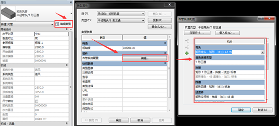 操作过程:属性下的编辑类型→布管系统配置中的编辑→构件下一系列管件的选择。